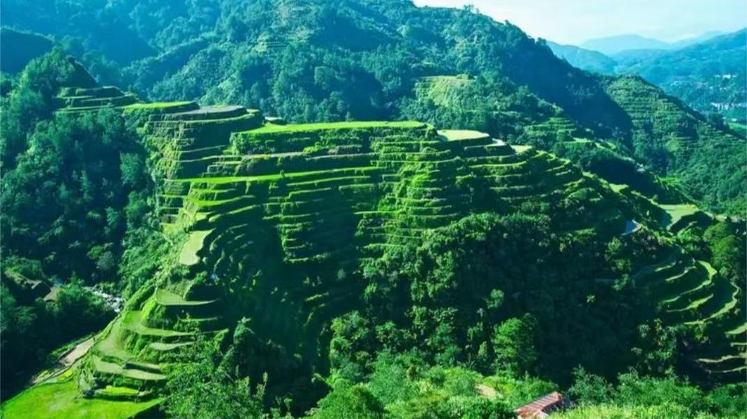 再把斜坡上方的土挖平铺开,放眼看去,顿时出现一层层平整梯田。