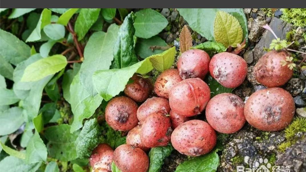 成熟的果实半埋在土里像一个个枇杷,棕红和暗红色,甜香诱人,掰开里面全是籽,也是山里孩子最喜欢的零食。