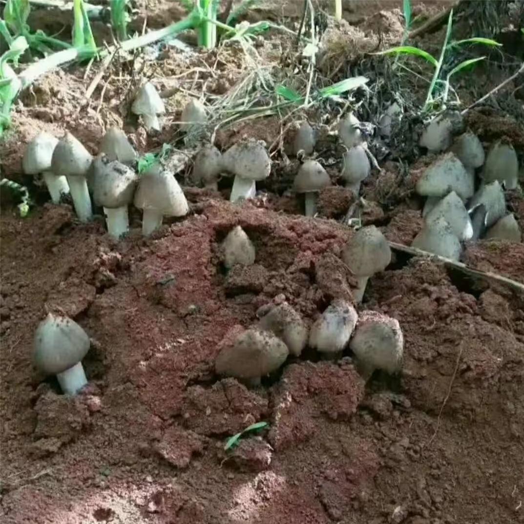 江枝来得早,这里的鸡枞菌很多才冒出土,伞盖没有打开,看去只见泥土被顶着一个个尖塔。