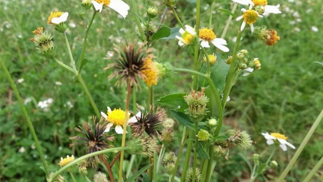 这处斜坡上的草都是鬼针草,这些野草都是鬼针草,现在花针并有,白色小花开在枝头,更多的还是一簇簇的黑针。