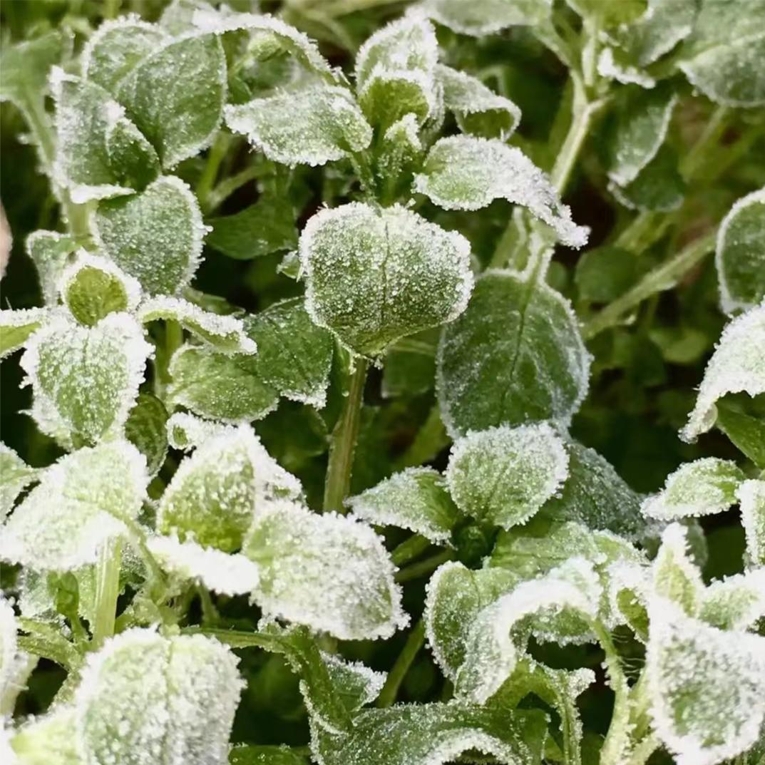 地里的绿菜叶仿佛成了绿翡翠,树叶包裹上透明的冻壳。