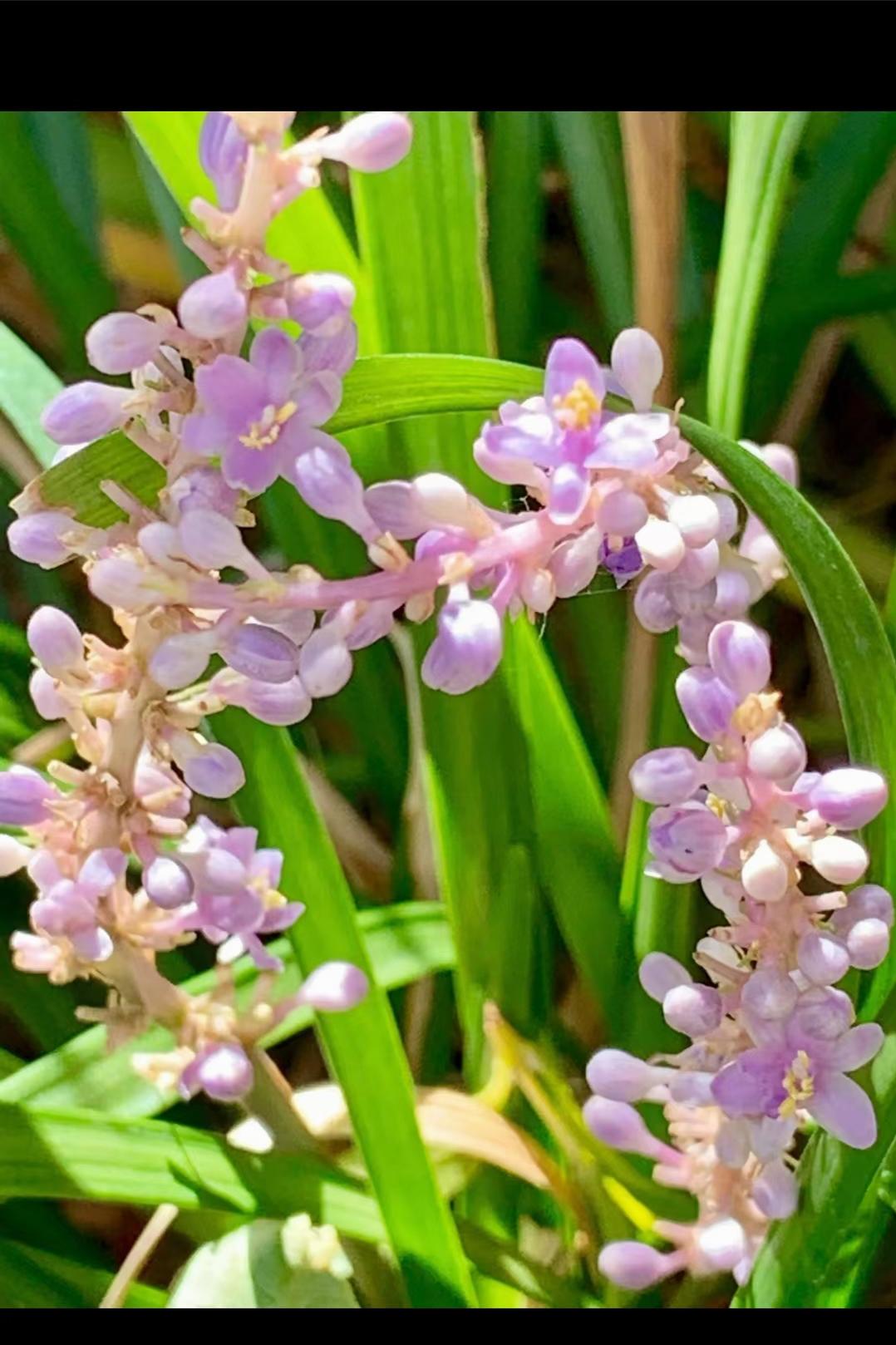 现在正是麦冬开花的时间,一串串淡粉的花枝扎在草丛中,远看平平淡淡,近看很是惊艳。