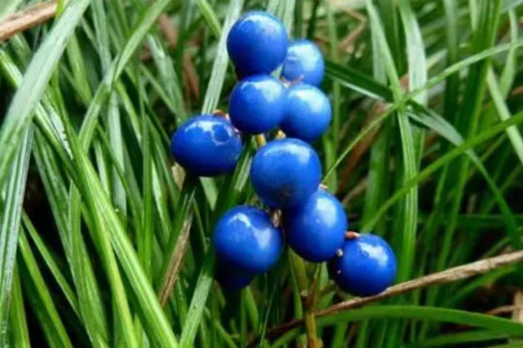 麦冬果实像洒落草丛中的深蓝色宝石,串手链也好看,不能食用
