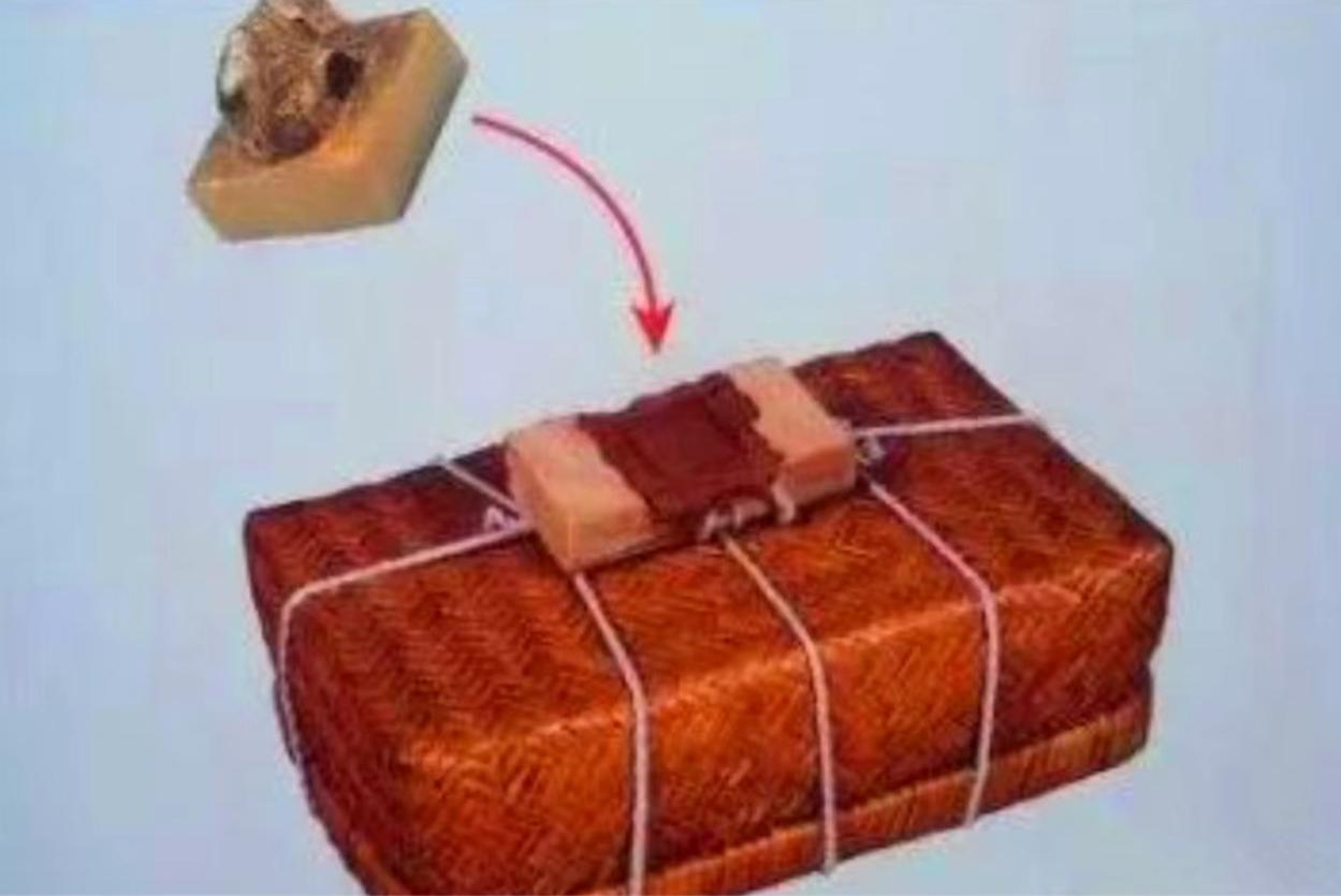 为防止简牍在传递中被偷看,在绑扎结实后,用泥块填封在结绳处的木块中,并在泥上加盖印章,就叫封印。