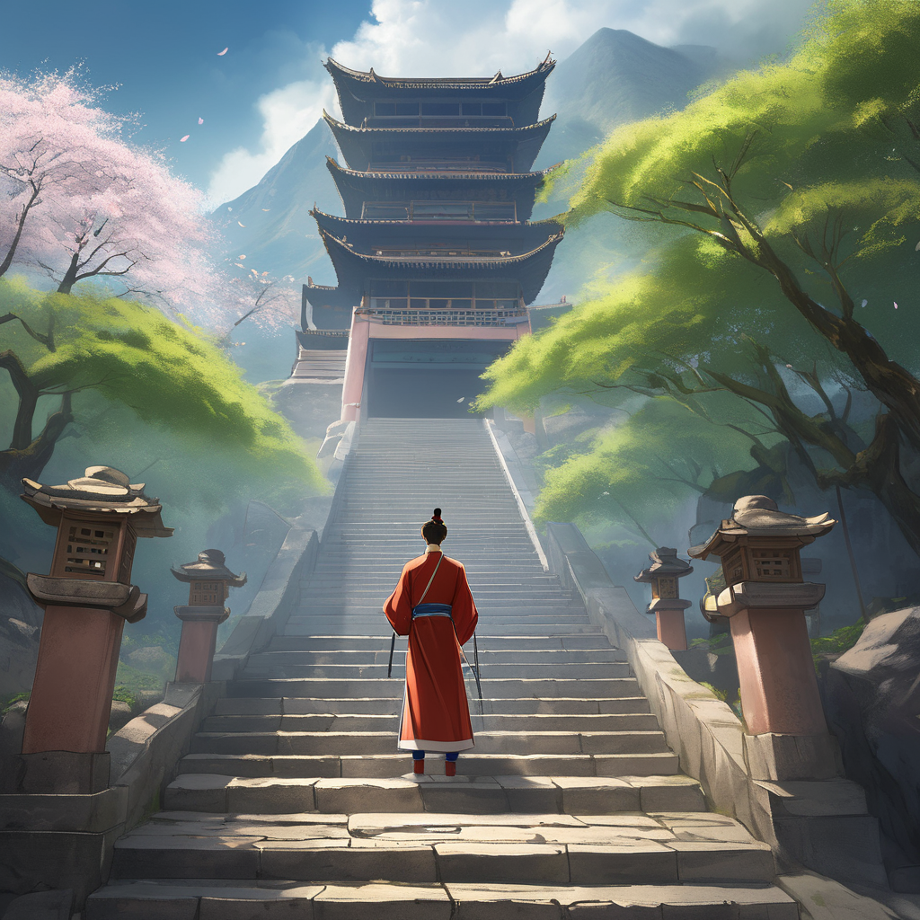 走进大门,林飞看到一条蜿蜒向上的石阶,石阶通向一座造型很独特的建筑,像寺庙但又有些不同。