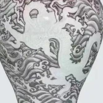 说是青色的花瓶,实际这上面还有些灰黑色勾勒出的图案,画的是一条龙,还有些应该就是翻滚的浪花。