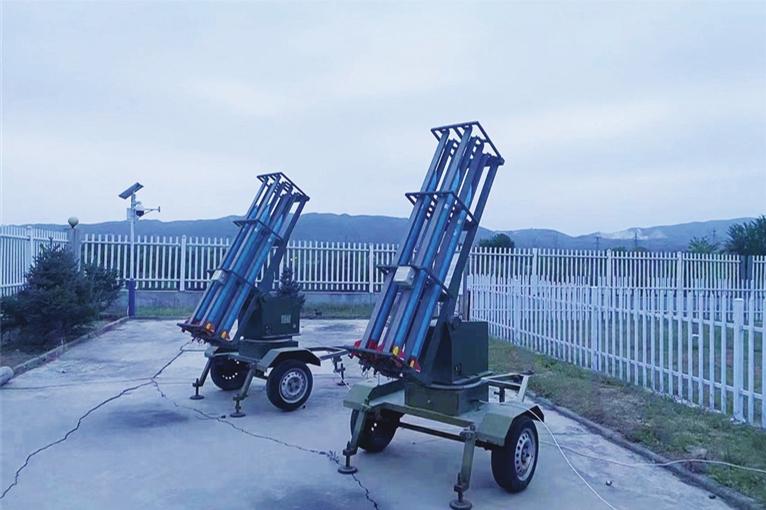 【这是人工增雨火箭弹发射架,一部发射架可以装载4枚火箭弹。】
