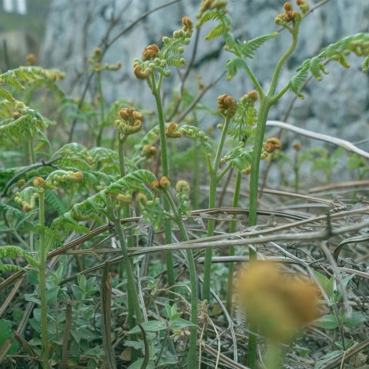 在一片向阳的山坡,江清月看到了一小片野生蕨菜。