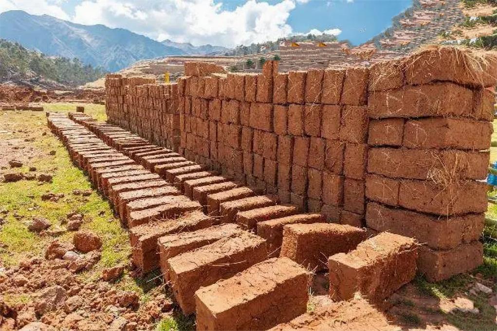众人一担担挖了土运回,用铁锹混合水和干草拌匀,再铲进木头做好的模具里,夯实后倒出来晒干就成了。