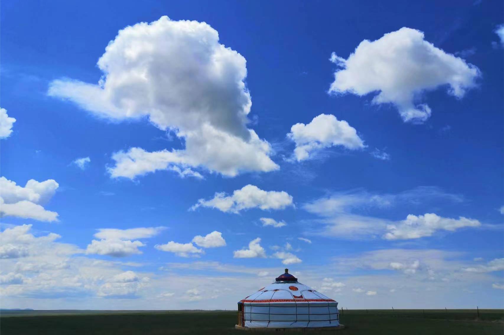 (老沧自己拍的:蓝天白云蒙古包)
